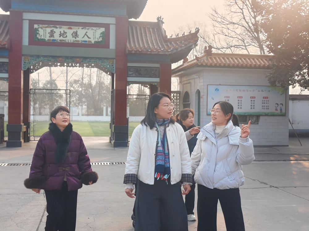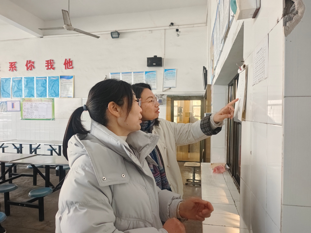 捐赠仪式后,在桥沟小学负责人的陪同下,赵校长一行实地察看校园环境,深入走访学生宿舍、师生餐厅,细致了解校园文化建设情况。每到一处,都认真听取介绍,仔细询问宿舍管理规范、餐厅食品安全保障及校园文化阵地打造等细节,对桥沟小学整洁有序的宿舍环境、卫生规范的餐厅管理和校园文化给予肯定,并结合东大街小学的校园文化建设经验,提出了优化提升的建议。