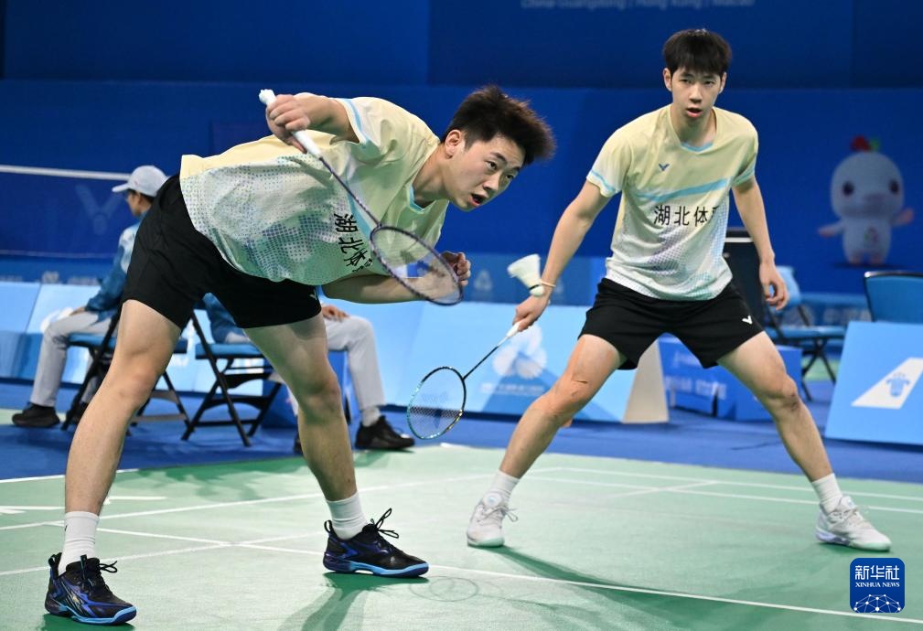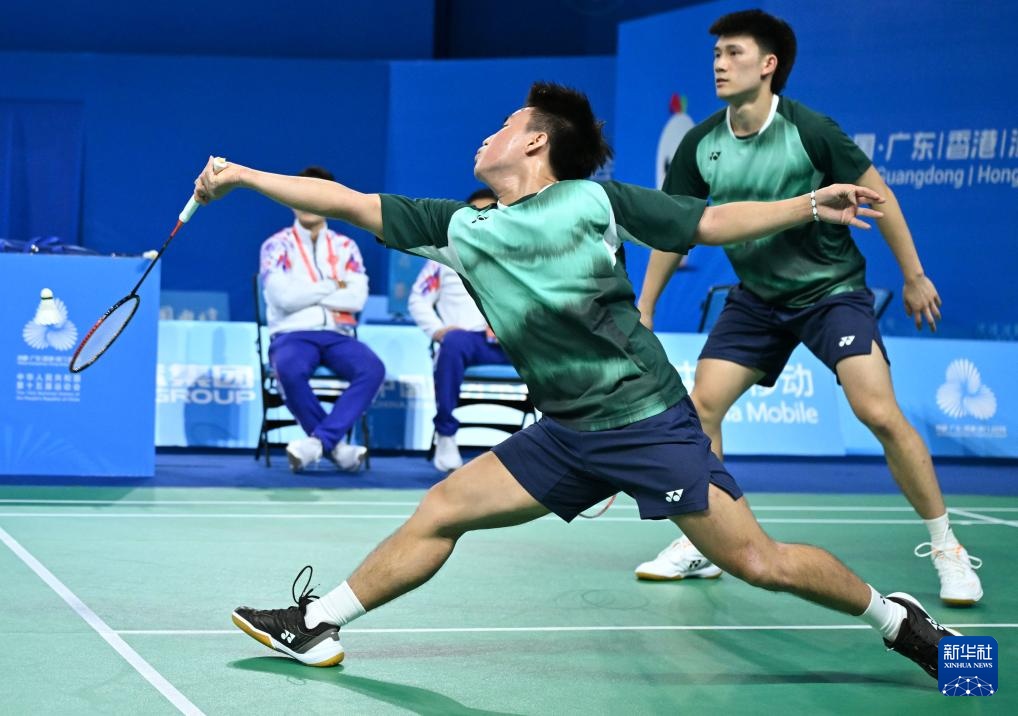 11月11日,在深圳进行的第十五届全国运动会羽毛球男子团体小组赛E组比赛中,湖北队3比2战胜香港队。